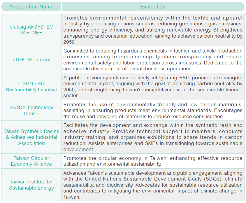 Nan Pao is a member of various industry associations, with close attention to those engaged in climate-related initiatives.
