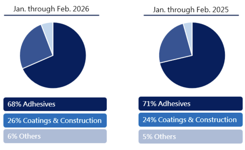 Sales breakdown by business unit for January through February 2026 & 2025 is below :